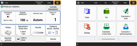 Premere visualizzato nella schermata <Home> e nella schermata funzioni di base per personalizzare la schermata, per esempio ridisponendo i pulsanti o creando un tasto di scelta rapida. Personalizzazione del pannello digitale![]() È possibile modificare le impostazioni relative alla visualizzazione della schermata, come ad esempio quale schermata appare subito dopo l'accensione della macchina e la visualizzazione di un messaggio relativo alla quantità residua di carta e toner. <Impostazioni visualizzazione> È possibile impostare la visualizzazione della schermata dopo che è trascorsa una certa quantità di tempo senza operazioni. <Funzione dopo ripristino automatico> |