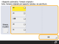 Se si imposta <Fascicolazione automatica> su <On>, la modalità di fascicolazione viene impostata automaticamente quando si posizionano gli originali nell'alimentatore. <Fascicolazione automatica>