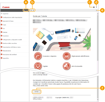 Fare clic per visualizzare informazioni su come visualizzare l'Guida per l'utente, come effettuare una ricerca e altre informazioni.
