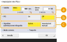 Premere <Preferenze>  <Rete>  <Impostazioni TCP/IP>  <Impostazioni IPSec>.