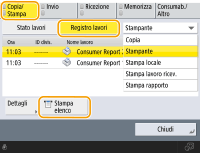 1 | Premere <Copia/Stampa> <Registro lavori>. |