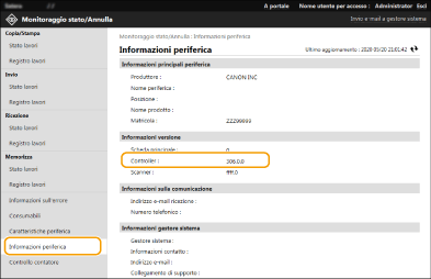 Verificare la versione mostrata in [Controller] in [Informazioni versione].