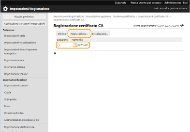 Selezionare il certificato CA che si desidera registrare a fare clic su [Registrazione].