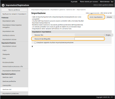 Inserire la password in [Password decrittografia] e fare clic su [Avvio importazione]