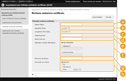 [Impostazioni per richiesta rilascio certificato (SCEP)].
