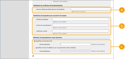 Inserire la stringa di caratteri registrata nell'attributo specificato in [Attributo utente da cercare:]. Per impostare i privilegi basati sul gruppo a cui appartiene l'utente, inserire il nome del gruppo.