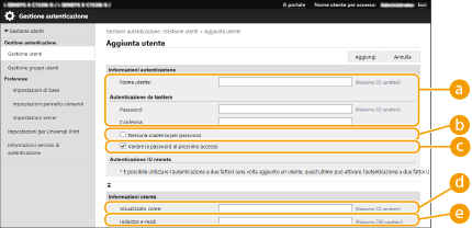 Fare clic su [Aggiunta utente].
