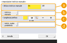 Premere <On> in <Utilizzo indirizzo manuale> ed eseguire le impostazioni necessarie.