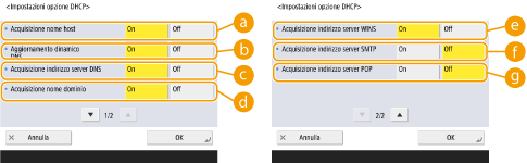 Premere <Preferenze> <Rete> <Impostazioni TCP/IP> <Impostazioni IPv4> o <Impostazioni IPv6> <Impostazioni opzione DHCP>.