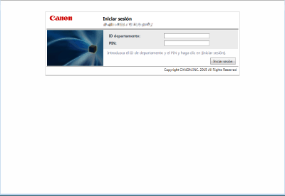 Si la gestión de ID de departamento no está implantadaSi solo están configurados el ID del administrador del sistema y el PIN sin Gestión de ID de departamentos, los métodos de inicio de sesión varían entre el administrador del sistema y los usuarios generales. Para el administrador del sistema, introduzca [ID de administrador del sistema]/[PIN del administrador del sistema], y luego haga clic en [Iniciar sesión (administrador)]. Para los usuarios generales, no tiene que introducir el ID de departamento ni el PIN. Haga clic en [Iniciar sesión (usuario general)]. |