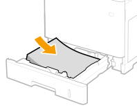 Para los equipamientos opcionales Unidad Alimentacion papel PF-C, siga el procedimiento del casete para cargar papel. Si las hubiera, siga las instrucciones incluidas en el paquete de papel sobre el lado de carga del papel. El papel podría solaparse al ser alimentado o podría producirse un atasco de papel en función de cómo sea la superficie de corte del papel. Cambie la orientación del papel y vuelva a cargarlo para reducir el efecto de la superficie de corte. Si se agota el papel y se detiene la impresión, cargue una nueva pila de papel. La impresión se reiniciará una vez que esté colocada la pila nueva. |