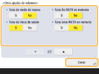 Configure cada sonido de confirmación / sonido de advertencia y pulse <Cerrar>.