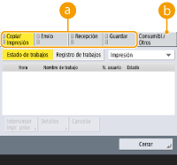 Estado y registros de copia/impresión/transmisión/documentos guardados
