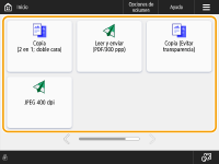 Pulse <Copia>  especifique las opciones de copia. Pantalla <Inicio>