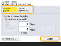 Seleccione las páginas para la copia de muestra y pulse <Aceptar>.