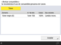 Pulse  (Monitor estado)  <Consumibl./Otros>  <Revisar consumibles>.