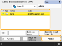 Puede buscar y especificar destinos registrados en el servidor LDAP.