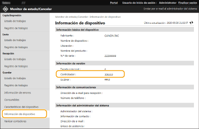 Compruebe la versión que aparece en [Controlador] en [Información de versión].