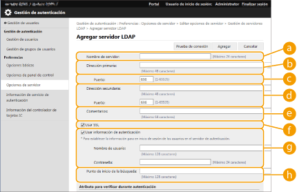 Seleccione la casilla de verificación al utilizar un servidor LDAP.