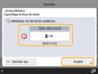 ![]() | Puede escanear originales de antemano y enviar/guardar los documentos escaneados a una hora concreta. |
