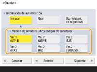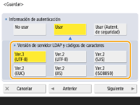 2 | Seleccione la combinación de la versión LDAP del servidor y el código de caracteres, y pulse <Siguiente>. ![]() |