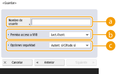 Seleccione los privilegios de acceso de MIB de <Lect./Escrit.> o <Sólo lectura>.