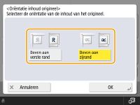 <Elke kleur aanpassen> drukt, kunt u de densiteit van de achtergrond op kleur aanpassen.![]() | U kunt de oriëntatie van een origineel dat op de glasplaat of in de invoerlade is geplaatst, als horizontaal of verticaal opgeven. |