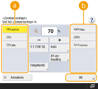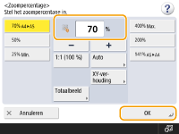 ![]() | U kunt een origineel vergroten of verkleinen door het zoompercentage (%) op te geven. U kunt de verticale en horizontale zoompercentages afzonderlijk opgeven. Kopieën vergroten of verkleinen door opgave van het zoompercentage | |