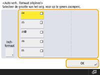 ![]() | Als u originelen van een vrij formaat of met een hoge transparantie wilt kopiëren, of als u wilt kopiëren op papier van de multifunctionele lade, moet u het papier handmatig selecteren. |