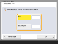 (Wissen) om de pincode te wissen (het tekstvak moet leeg zijn). Druk vervolgens op <OK>.![]() |