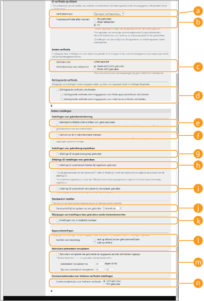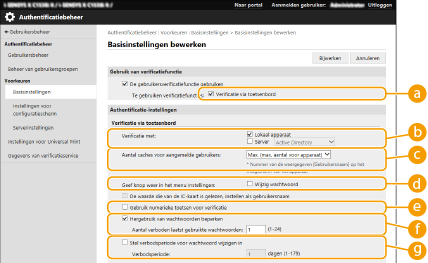 Schakel het selectievakje voor [De gebruikersverificatiefunctie gebruiken] in en geef de benodigde instellingen op.