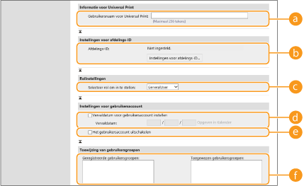 [Gebruikersnaam voor Universal Print:]Als [Instellingen/Registratie]
