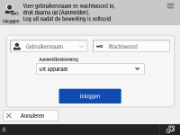 | | Met deze methode loggen gebruikers in met behulp van hun gebruikersnaam en wachtwoord via het toetsenbord dat wordt weergegeven op het bedieningspaneel. Deze methode is beschikbaar, ongeacht het verificatieapparaat dat wordt gebruikt. |