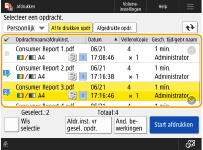 De documenten die in de machine worden bewaard, worden opgeslagen, zelfs als het apparaat is uitgeschakeld. U kunt de bewaartijd van de gegevens wijzigen. <Periode opslag opdrachten> |