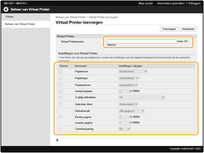 U kunt niet meerdere virtuele printers met dezelfde naam registreren. Maximaal kunnen 20 virtuele printers worden geregistreerd. |