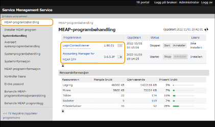 Klikk på [MEAP Application Management], og klikk på appen for å administrere lisensen.