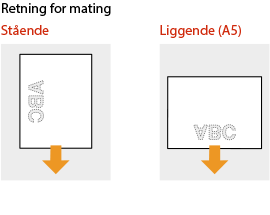 Metoden for å legge i papir varierer avhengig av om papirretningen er liggende eller stående.