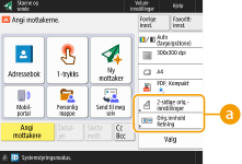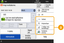I <Favorittinnst.> kan du registrere ofte brukte prosedyrer for kopiering samt ofte spesifiserte mottakere og innstillinger for skanning. Hvis du vl ha mer informasjon, kan du se Registrere en kombinasjon av ofte brukte funksjoner.