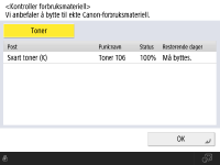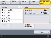 Du kan sjekke gjenværende mengde forbruksvarer fra Fjernkontroll. Kontrollere maskinstatusen |