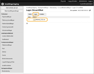 Klikk på [Utstyrstyring]  [CA-sertifikatinnstillinger].