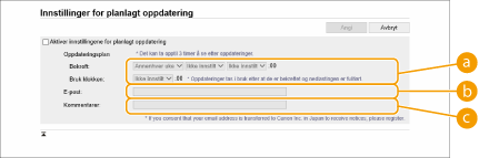 Merk av i boksen for [Aktiver innstillingene for planlagt oppdatering], og konfigurer de nødvendige innstillingene.