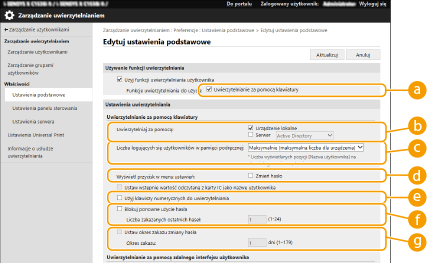 Hvis denne funksjonen er aktivert og brukernavnet og passordet bare består av tall, kan godkjenning bare utføres med oppføringer med talltaster.