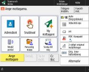 Skärmen med grundläggande funktioner för Scanna och skicka