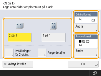 Välj hur många sidor som ska ordnas på ett och samma pappersark. Du kan även ändra ordningen.