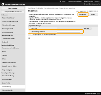 I [Dekrypteringslösenord], ange samma lösenord som angavs när inställningsdata exporterades.
