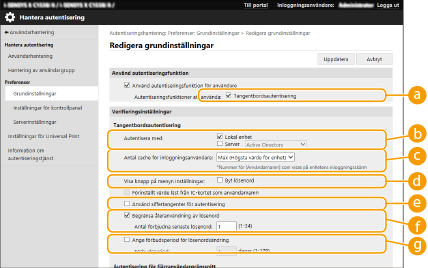 Konfiguration av detaljerade inställningar för autentiseringsfunktioner
