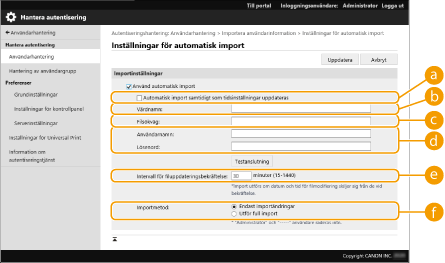 Du kan automatiskt uppdatera användardata genom att regelbundet importera filer som lagrats på en viss plats.