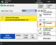 ![]() | Du kan ange färg vid scanning av original. |