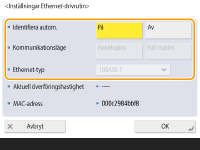 Som generell regel, tryck på <På> i <Identifiera automatiskt>. Kommunikationssystem och Ethernet-typ känns av och ställs in automatiskt.