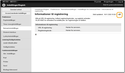 Klik på [Registreringsstatus] for [Fjern registrering].